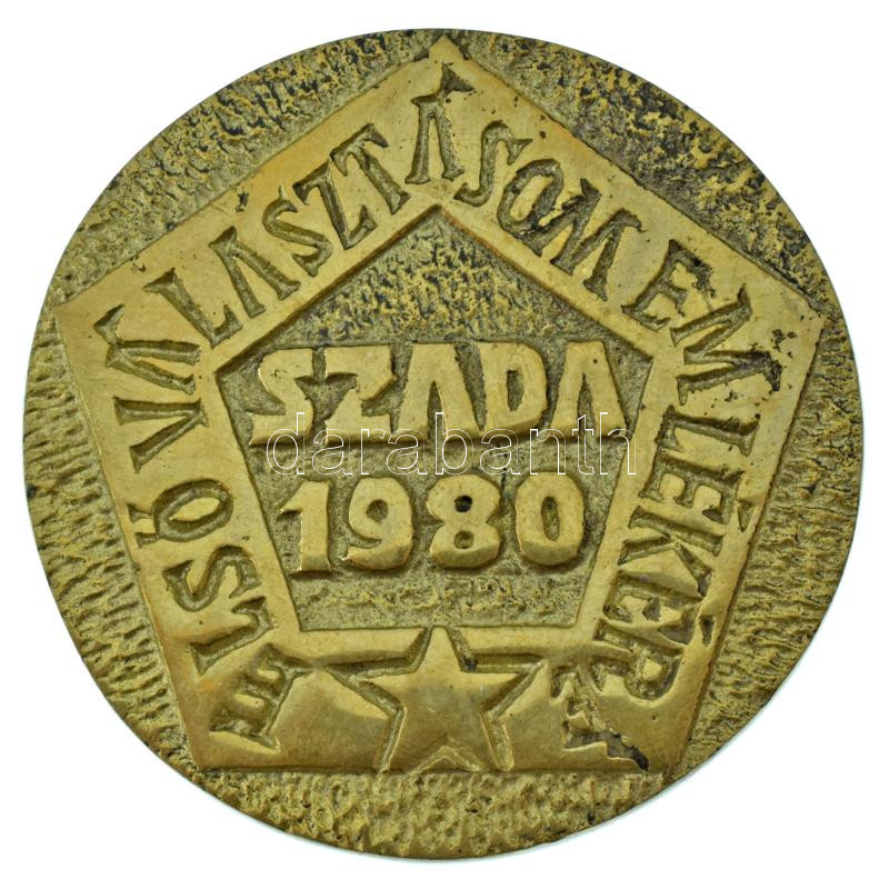 1980. "Első választásom emlékére - Szada 1980" egyoldalas, öntött bronz érdemérem tokban (59mm) T:AU
