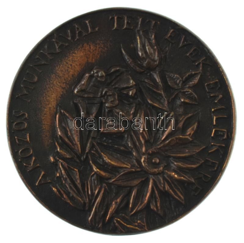 1993. "A közös munkával telt évek emlékére" egyoldalas, öntött bronz emlékérem, hátlapon "19.sz. Általános Iskola 1993" gravírozással, kopottas tokban (83mm) T:AU