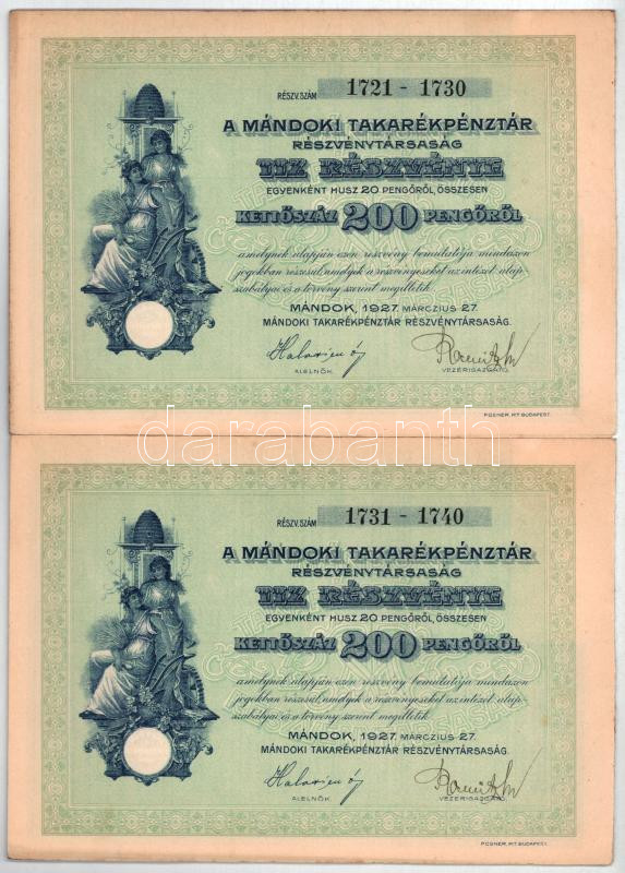 https://www.darabanth.com/en/515-Auction-philately-postcards-numismatics-artwork-books-collectibles-jewelry/518.0/Numismatics/Shares-and-Tickets~663/1927-Mandok-3Cem3EMandoki-Takarekpenztar-Reszvenytarsasag3Cem3E-tiz-reszvenye-egyenkent~II3084705