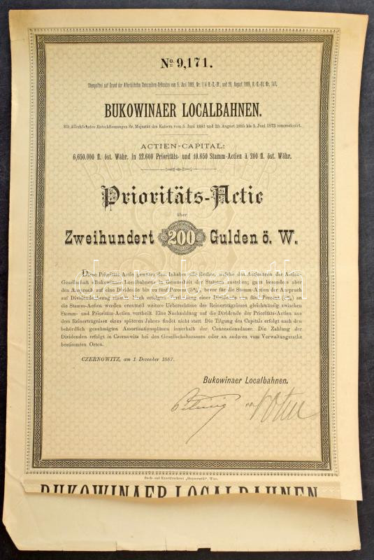 https://www.darabanth.com/en/515-Auction-philately-postcards-numismatics-artwork-books-collectibles-jewelry/518.0/Numismatics/Shares-and-Tickets~663/Osztrak-Magyar-Monarchia-Czernowitz-1887-Bukowinaer-Localbahn-elsobbsegi-reszveny-200G-ro~II3470980