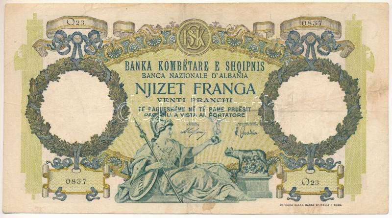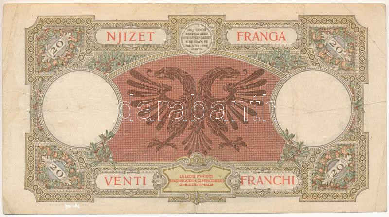 Albánia / Olasz megszállás DN (1939.) 20Fr T:F