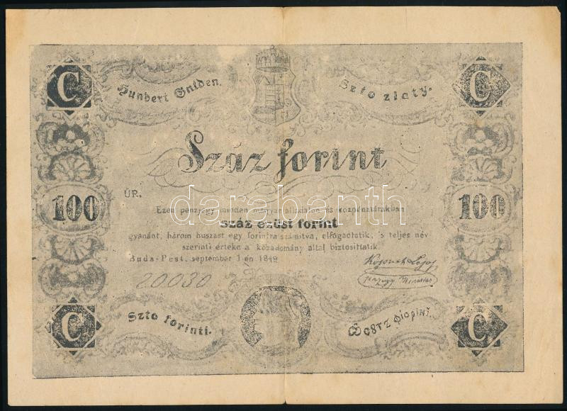 Description: cca 1890-1900 Blau Salamon úri és női divatáruháza (Bp., VII., Kerepesi út 64.) reklámlapja, másik oldalán 100Ft-os bankjegy ("Kossuth bankó") ábrázolásával, 13,5x18,5 cm