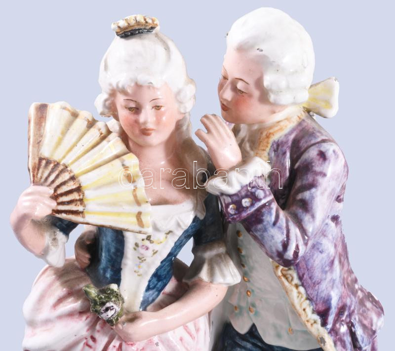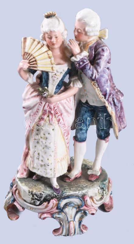 Német rokokó pár. Fajansz, kézzel festett, kis lepattanással, jelzés n...