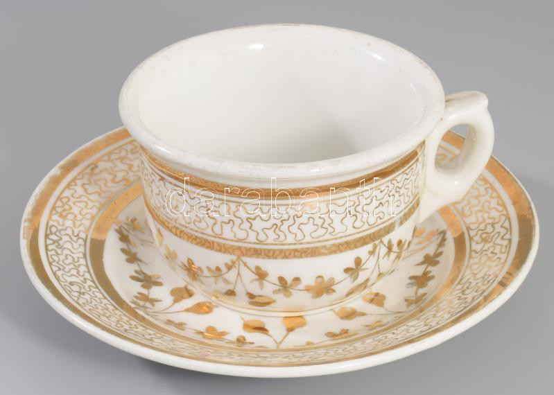 cca 1880 Osztrák emlékbögre alátéttel, kopással, d: 18,5 cm