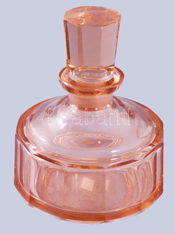Art deco rózsaszín lapra csiszolt likőrös üveg, m: 12,5 cm