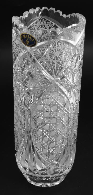 Bohemia gazdagon díszített ólomkristály váza, címkével jelzett, dobozá...
