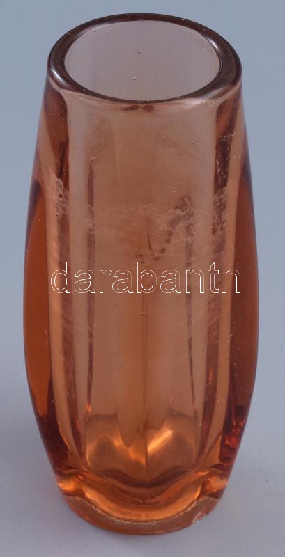 Cseh Sklo Union barackszínű váza. Kopással, m: 16,5 cm