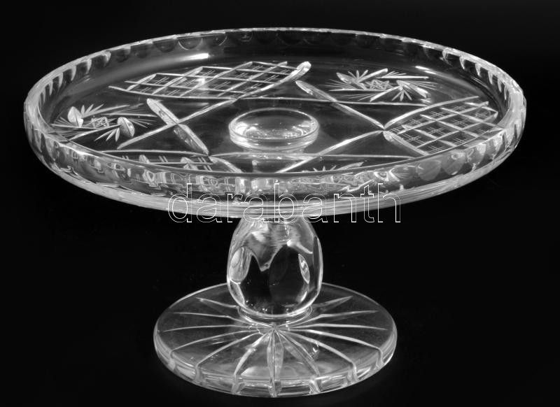 Ólomkristály talpas tortatál, hibátlan, d: 23 cm, m: 13 cm