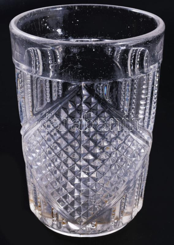 Szecessziós kúrapohár, szakított üveg, m: 10,5 cm