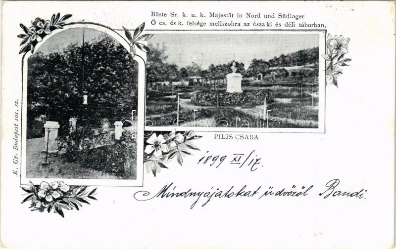 1899 Piliscsaba, Ő cs. és k. felsége mellszobra az északi és déli táborban. K. Gy. Budapest 101.sz. Art Nouveau, floral (EK)