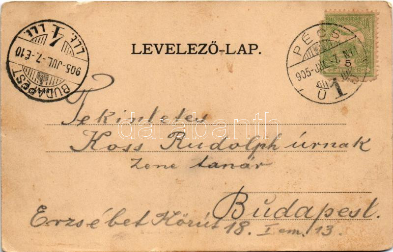 1905 Pécs, Hadapród iskola. Fürst Lipót kiadása (kis szakadás / small tear)