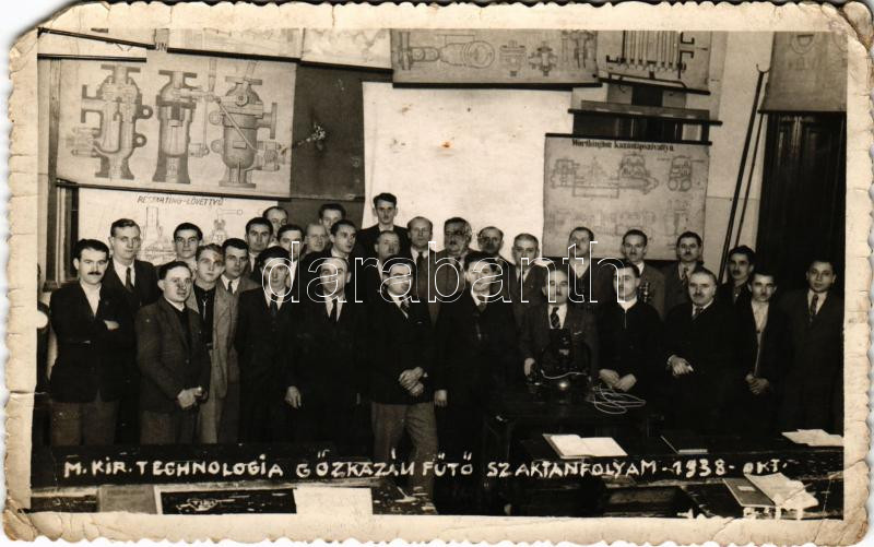 1938 Budapest (?), M. Kir. technológia gőzkazán fűtő szaktanfolyam rés...
