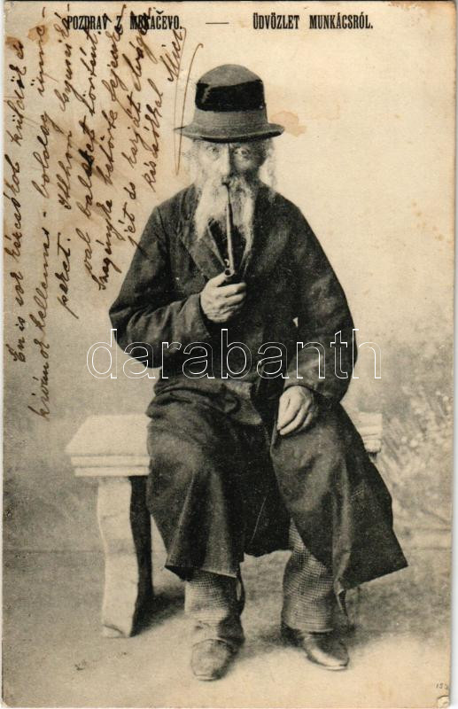 1924 Üdvözlet Munkácsról. Zsidó férfi pipával, Judaika / Greetings from Mukachevo. Jewish man smoking a pipe. S.M.P. Cracovie Deposé 1914-4. Judaica (fl)