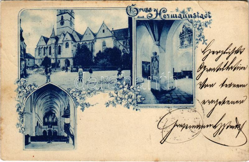 1899 Nagyszeben, Hermannstadt, Sibiu; Evang. Kirche. Verlag H. von Palocsay / evangélikus templom, belső / Lutheran church, interior. Art Nouveau, floral (gyűrődések / creases)