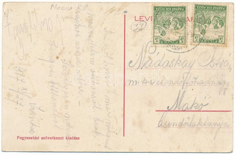 1917 Mócs, Mociu; Étterem és kávéház, Fogyasztási szövetkezet üzlete és saját kiadása / restaurant, cafe, cooperative shop (EK)
