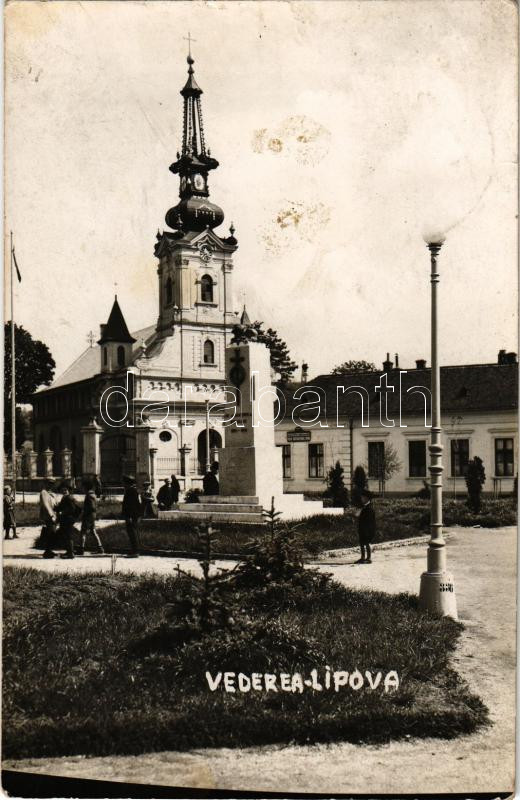 1939 Lippa, Lipova; Ortodox templom, Hősök emlékműve / Orthodox church...