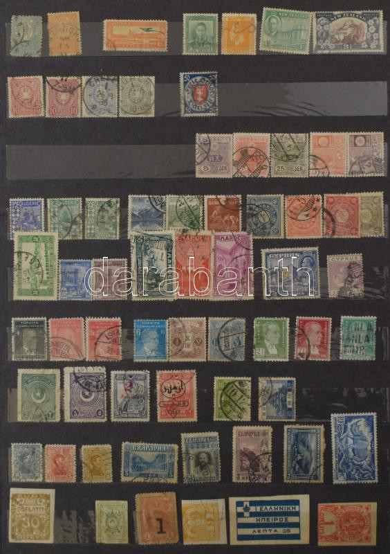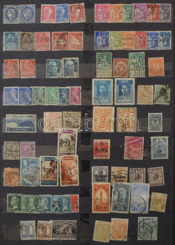 Sok száz régi külföldi bélyeg, 12 vastag fekete lapos nagy berakóban, sok tengerentúlival