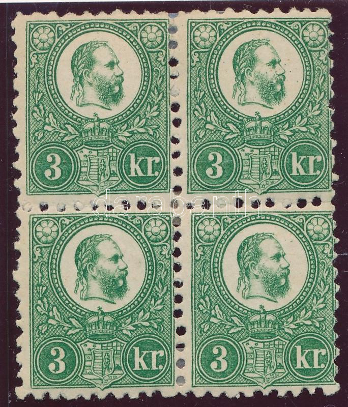 1871 Réznyomat 3kr négyestömb eredeti gumival, falcos. Certificate: Raybaudi