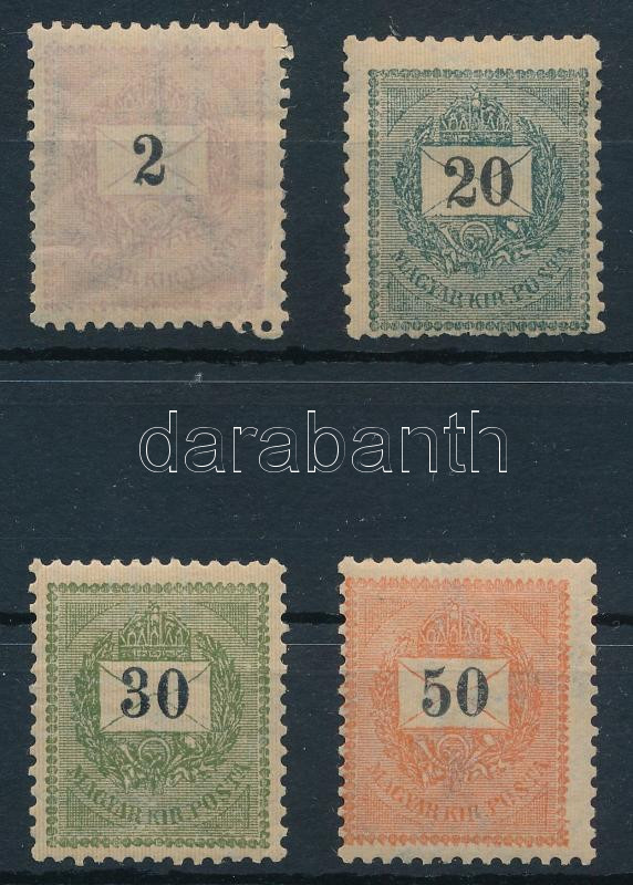 1899 2kr, 20kr, 30kr és 50kr (25.700) (2kr saroktörés / folded corner)