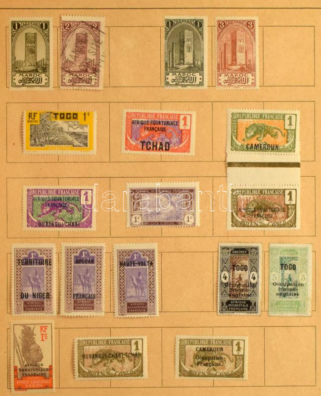 2 db Világalbum lapjai bélyegekkel, megviselt állapotban