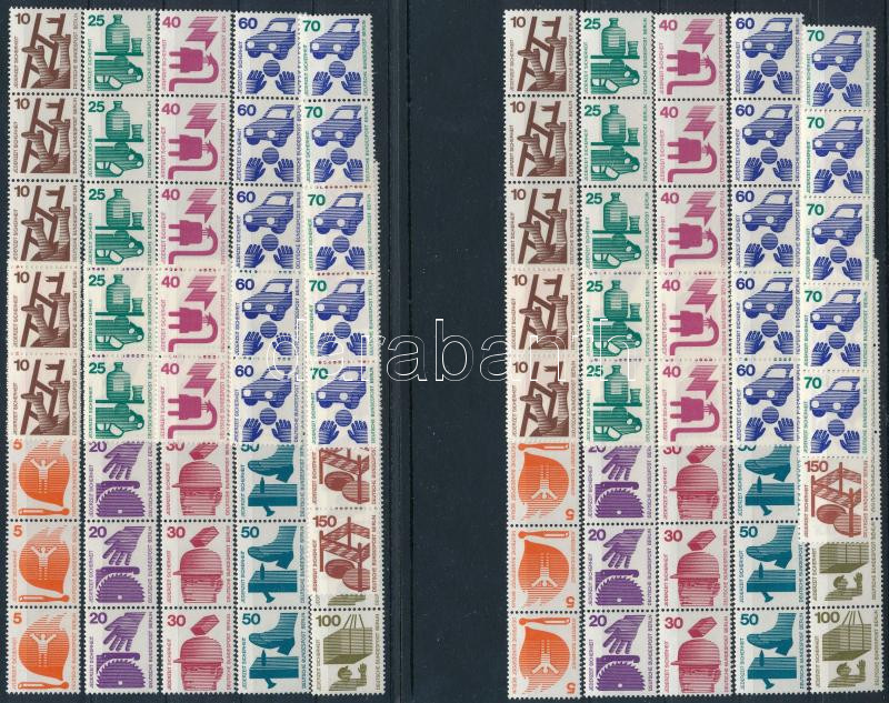 Németország Berlin 1971-1974 Mi 402-411 + 453 ellenőrzőszámos automatabélyegek ötös csíkokban, 2 példányban (Mi EUR 212.-)