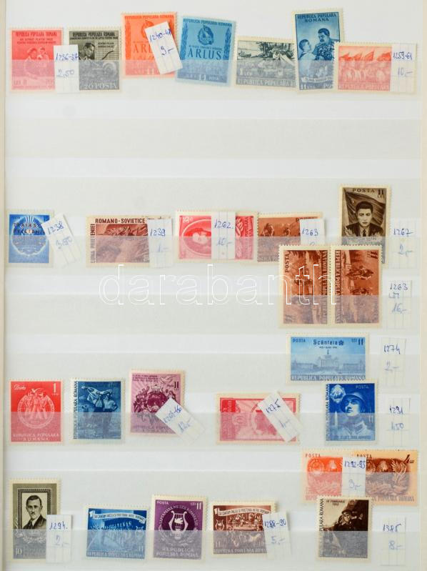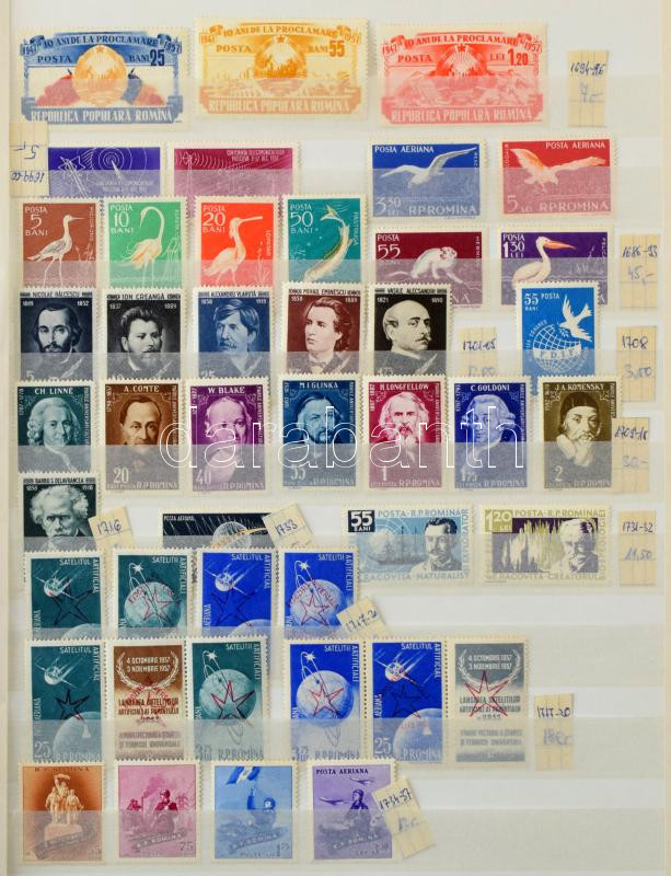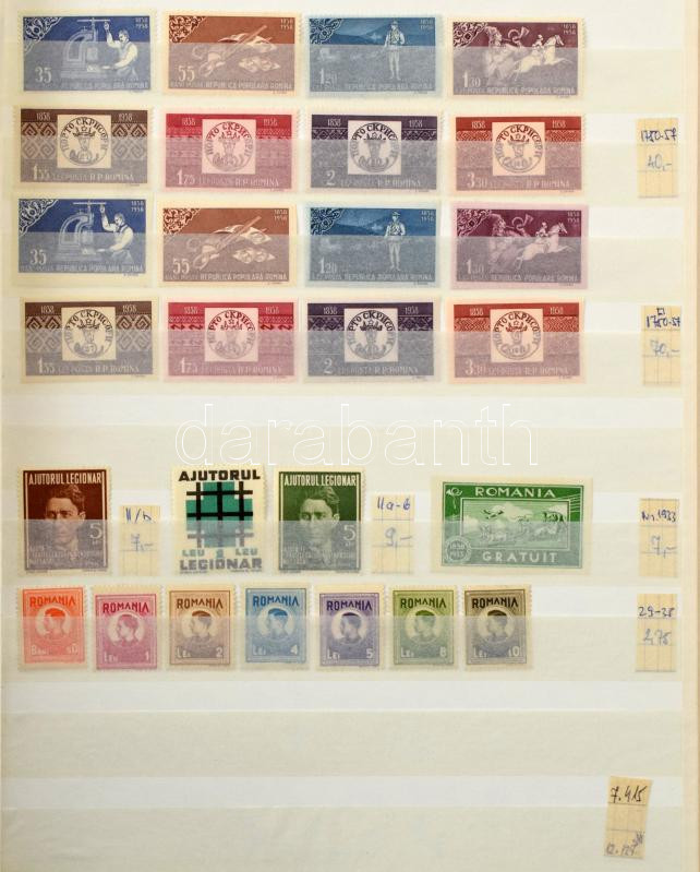 Románia 1952-1958 gyűjtemény jó kiadásokkal, előtte gyűjtemény maradvány a 30-as évekből. Magas katalógusérték! 16 lapos A4-es berakóban