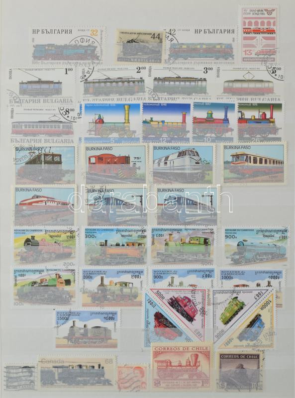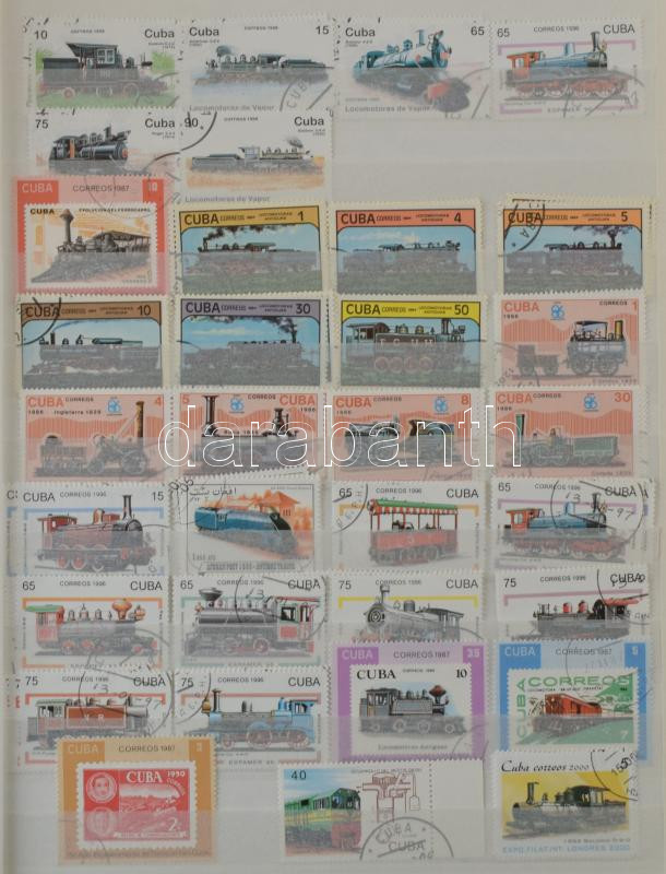 Vasút motívum gyűjtemény tengerentúli teljes sorokkal, több postatisztával 8 lapos A4-es berakóban