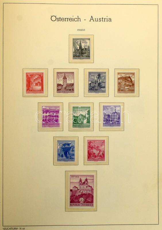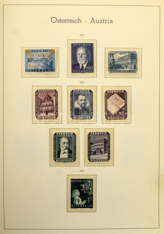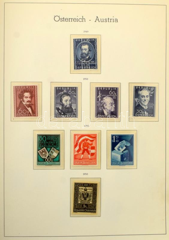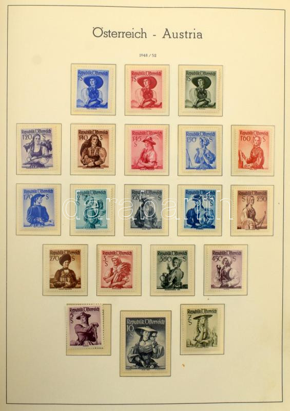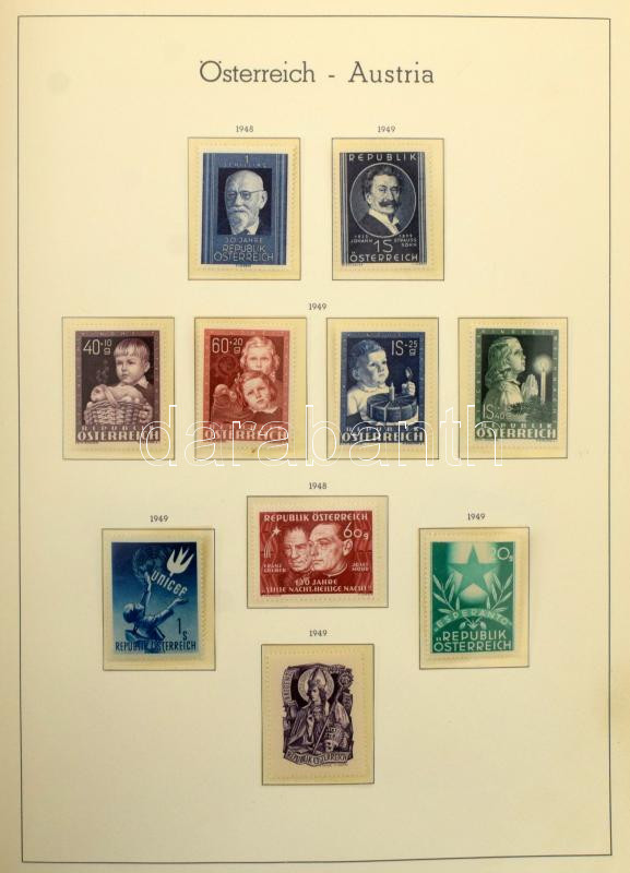 Ausztria gyűjtemény 1945-1969 több jó kiadással, magas katalógus értékű anyag Leuchtturn falcmentes előnyomott albumban, rugós borítóval