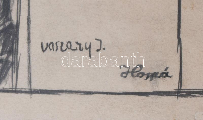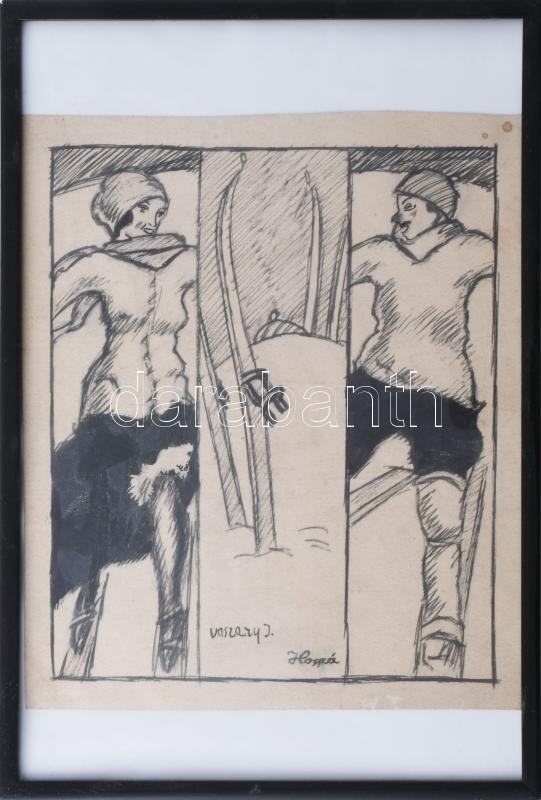 Vaszary J. Jelzéssel: Hoppá. Vegyes technika, papír. 23x20cm. Üvegezett keretben.