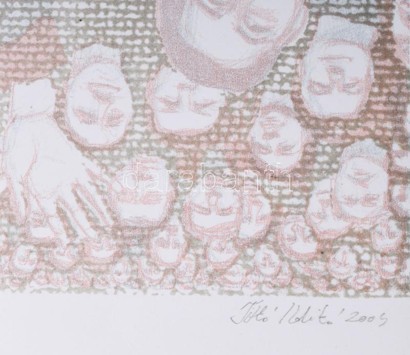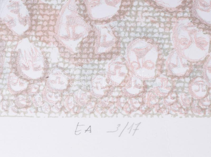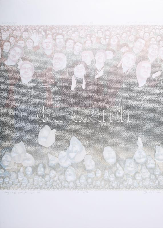 Bitó Ildikó (1966-): Tömeg, avagy egyszer lent, egyszer fent, 2004. Litográfia, papír, jelzett, művészpéldány E.A. 3/17 számozással. 50×50 cm