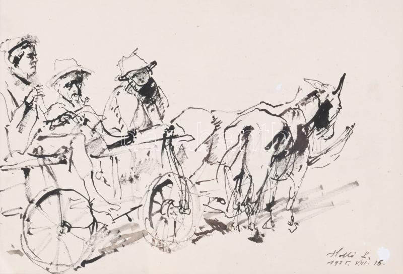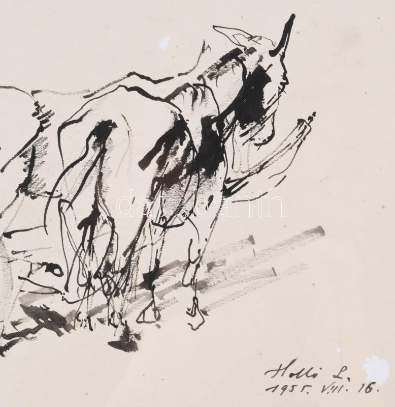 Holló László (1887-1976): Szekér öszvérekkel, 1955. Tus, papír, jelzet... https://www.darabanth.com/en/515-Paintings-posters-ex-libris-auction/517.0/Paintings-and-graphics/Paintings-and-graphics~16/Hollo-Laszlo-1887-1976-Szeker-oszverekkel-1955-Tus-papir-jelzett-Hatoldalan-Deri-M~II3457128