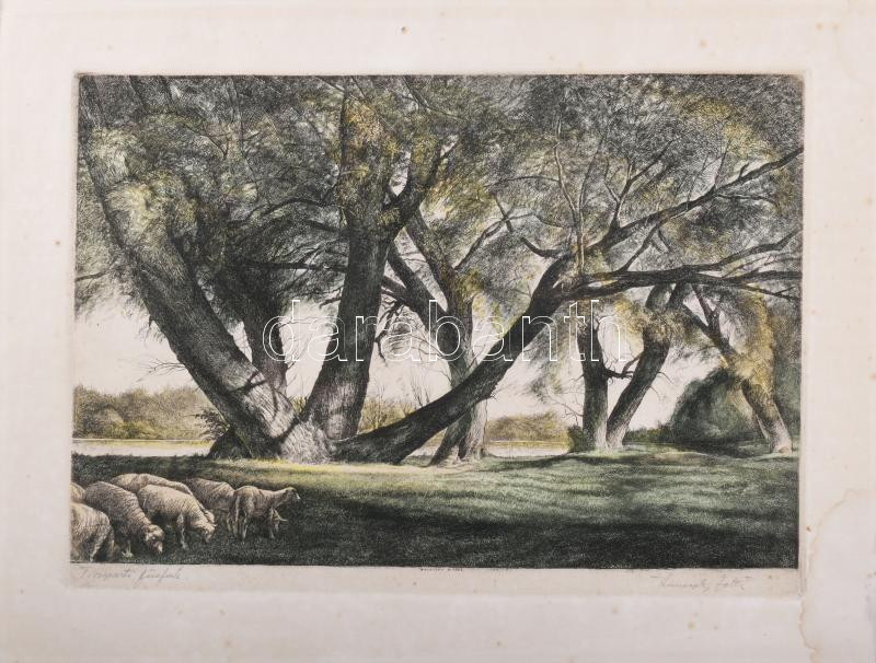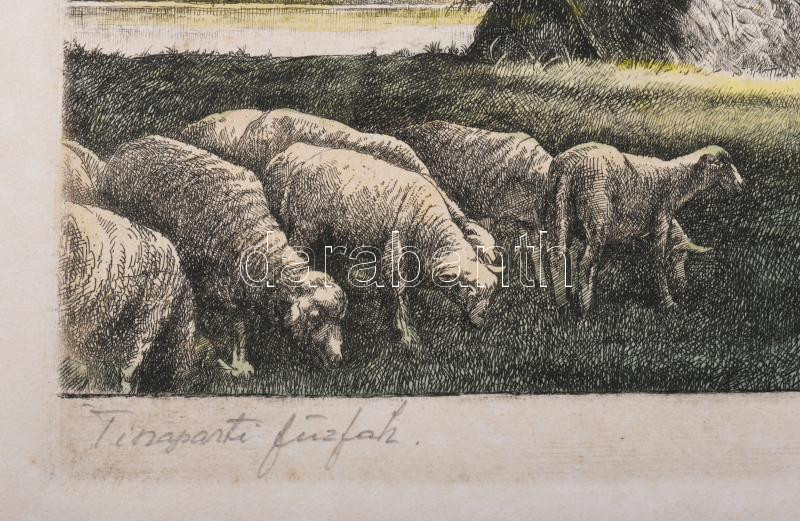 Kaveczky Zoltán (1897-1965): Tiszaparti fűzfák. Színezett rézkarc, pap...