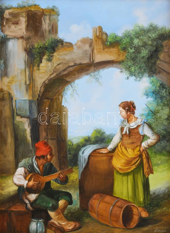 Kocsis Lénárd (1958-): Hölgyhódítás. Olaj, fa, jelzett. Dekoratív fake...