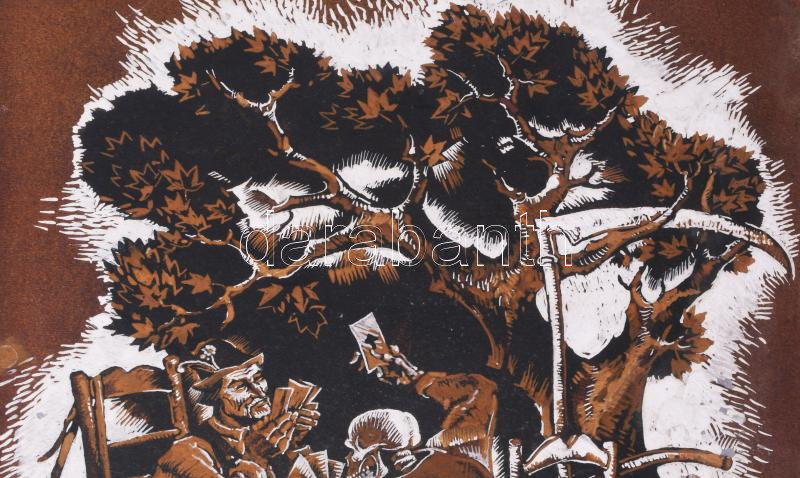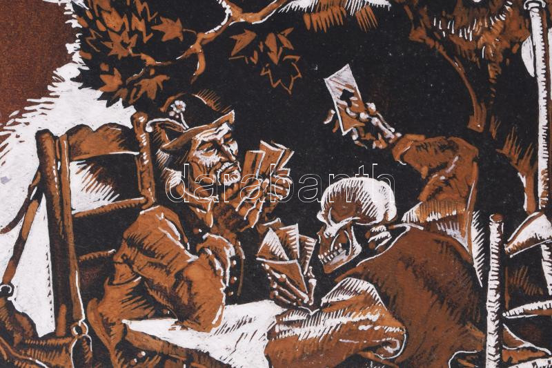 Muhits Sándor (1882-1956): Kártyázás a halállal, 1945. Vegyes technika...