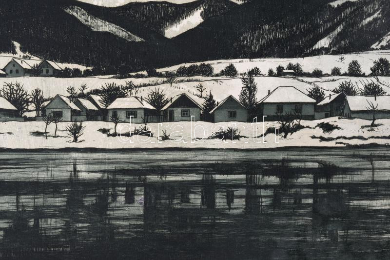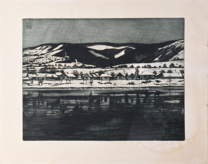 Novák Lajos (1927-1989): Téli táj (Dunakanyar). Rézkarc, papír, jelzet...