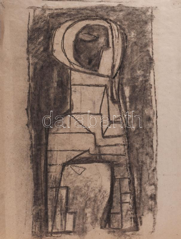 Rác András (1926-2013): Szentendrei ikon. Szén, papír, jelzés nélkül. Proveniencia: A művész hagyatéka. 41,5x31,5 cm
