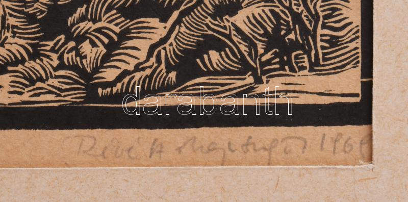 Révész Napsugár (1944-): Thomas Mann, A kiválasztott (illusztráció). Linómetszet, papír, jelzett, paszpartuban, 20×16,5 cm