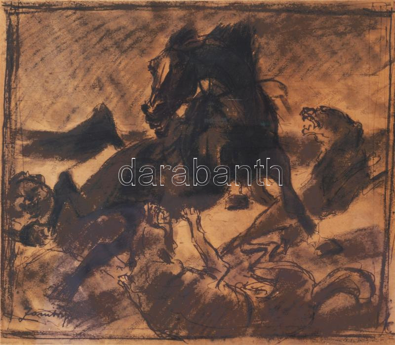 Zombory Lajos (1867-1933): Megvadult ló. Vegyes technika, papír, jelze...