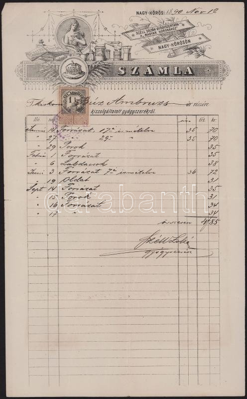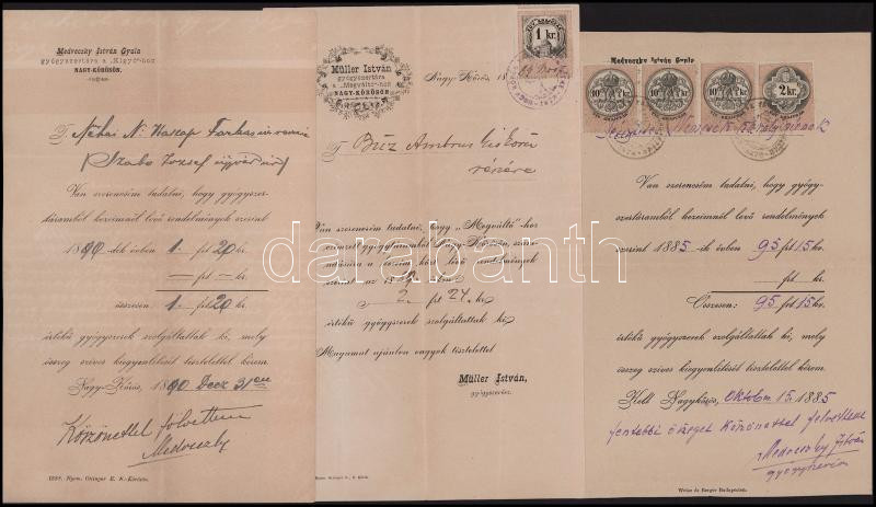 ca 1870-1900 4 db gyógyszerári számla, fejléces számla Nagykőrösről