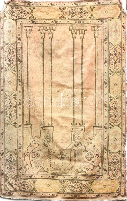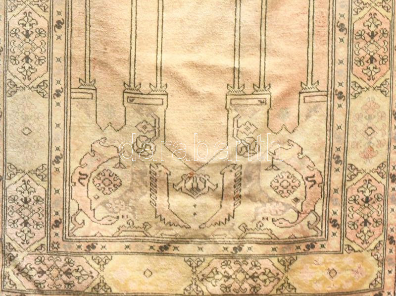 Kézzel készült keleti imaszőnyeg, 195x140 cm, kopással.