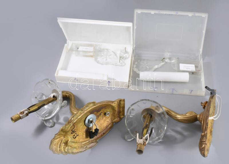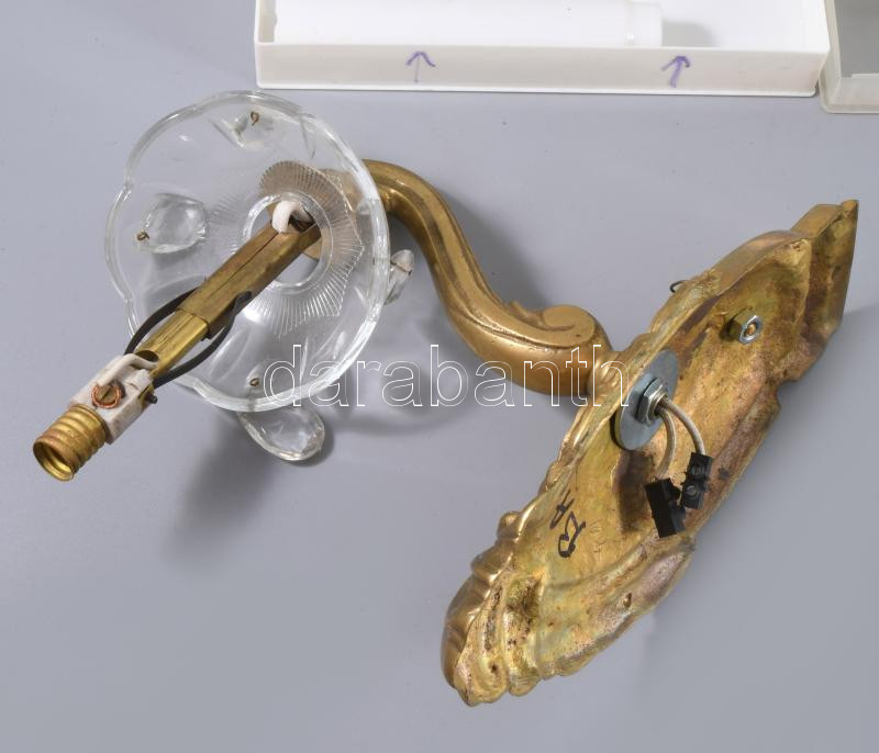 Antik bronz falikra pár, új vezetékezéssel, kiegészítőivel, 22x20 cm