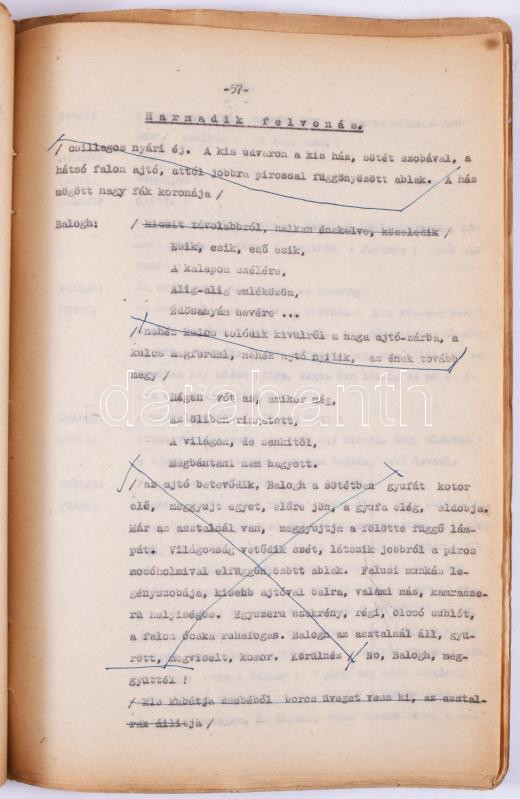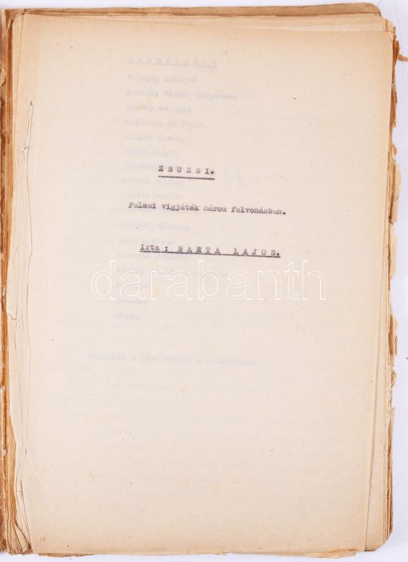 Barta Lajos, született Krausz Lajos (1878-1964) Kossuth-díjas magyar író, újságíró Zsuzsi c. szindarabjának kézirata. Autográf? javításokkal. A műről