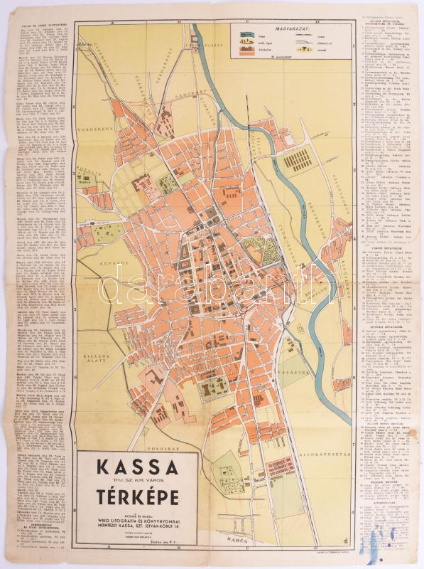 cca 1940 Kassa törvényhatósági jogú szabad királyi város térképe, lépték nélkül, Wiko Litografia és Könyvnyomdai Műintézet, hajtott, kisebb szakadásokkal, 62×45,5 cm
