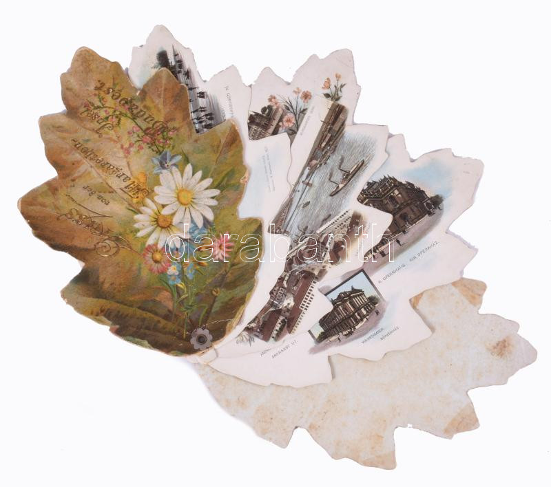 cca 1870 Gruss von der Margarethen-Insel Budapest, litho leporello Budapest nevezetességeivel, javított