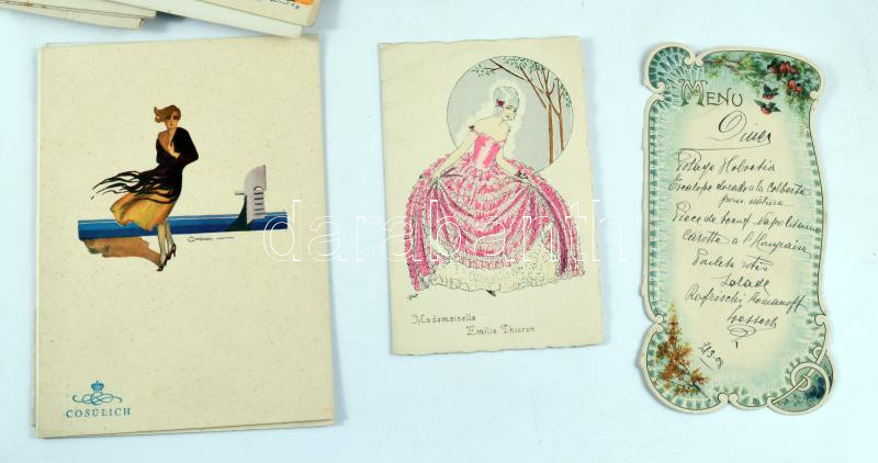 cca 1880-1915 28 db külföldi díszes menükártya, étlap, többet között tengerentúli hajójáratokról is, közte litho