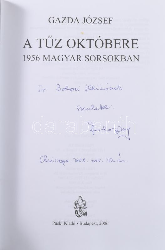 https://www.darabanth.com/en/516-Auction-philately-postcards-numismatics-artwork-books-collectibles-jewelry/520.0/Books/Books-History~1090/Gazda-Jozsef-A-tuz-oktobere-1956-magyar-sorsokban-DEDIKALT-Bp-2006-Puski-Kiadoi-kartonalt~II3503426