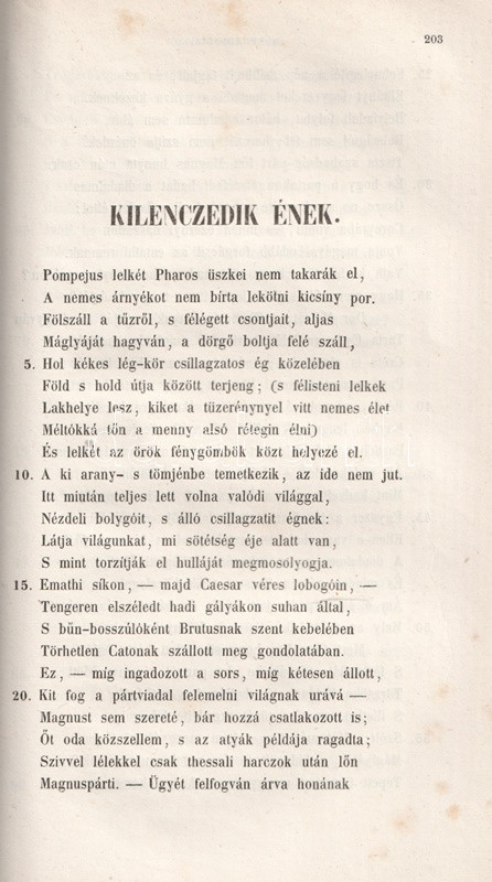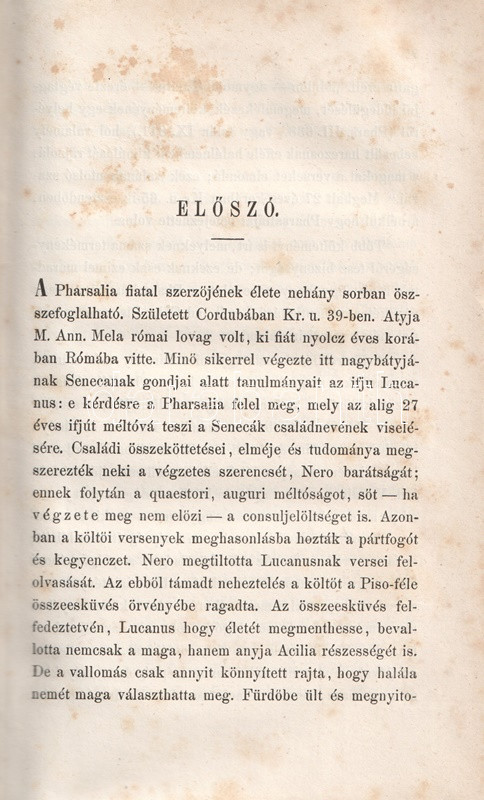 Marcus Annaeus Lucanus (Kr. u. 39-65) ezüstkori latin költő eposza, a Pharsalia a Julius Caesar és Magnus Pompeius között zajló polgárháború költeménye. Az eposzi kellékekkel, mitológiai apparátussal üzemeltetett eposz szokatlanul pesszimista vízió Rómáról, melyet a Caesar jelentette zsarnokság elpusztítással fenyeget. A győzelmes Julius-Claudius császári dinasztia idején írt eposz nem nyerte el Nero császár szimpátiáját, alkotóját öngyilkosság elkövetésére kényszerítette.