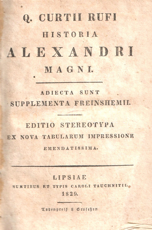 Historia Alexandri Magni. Adiecta sunt Supplementa Freinshemii. Editio stereotypa ex nova tabularum impressione emendatissima.