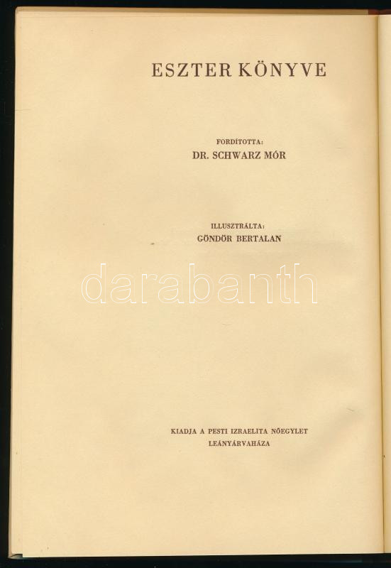 Eszter könyve. Ford.: Schwarz Mór. Göndör Bertalan illusztrációival. (... https://www.darabanth.com/en/516-Auction-philately-postcards-numismatics-artwork-books-collectibles-jewelry/520.0/Books/Books-Judaica~1100/Eszter-konyve-Ford-Schwarz-Mor-Gondor-Bertalan-illusztracioival-Bp-1943-Pesti-Izraelita~II3500129