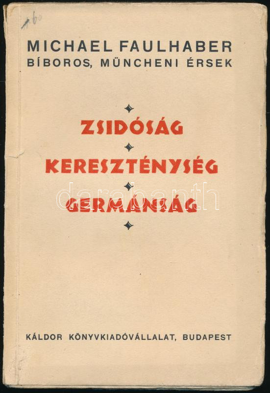 Michael Faulhaber: Zsidóság, kereszténység, germánság. A müncheni Szen... https://www.darabanth.com/en/516-Auction-philately-postcards-numismatics-artwork-books-collectibles-jewelry/520.0/Books/Books-Judaica~1100/Michael-Faulhaber-Zsidosag-keresztenyseg-germansag-A-muncheni-Szent-Mihaly-templomban-mondott~II3498741